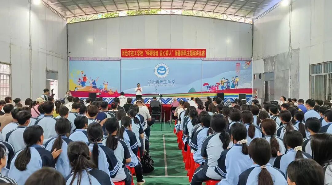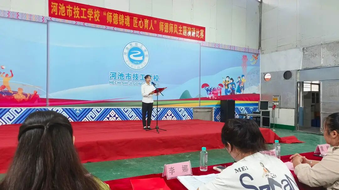 9月25日,河池市技工学校举办“师德铸魂 匠心育人”师德师风主题演讲比赛,学校教师齐聚一堂,怀着对教育的敬畏、对技能传承的热忱和对学生的关心关怀登台倾情演讲。