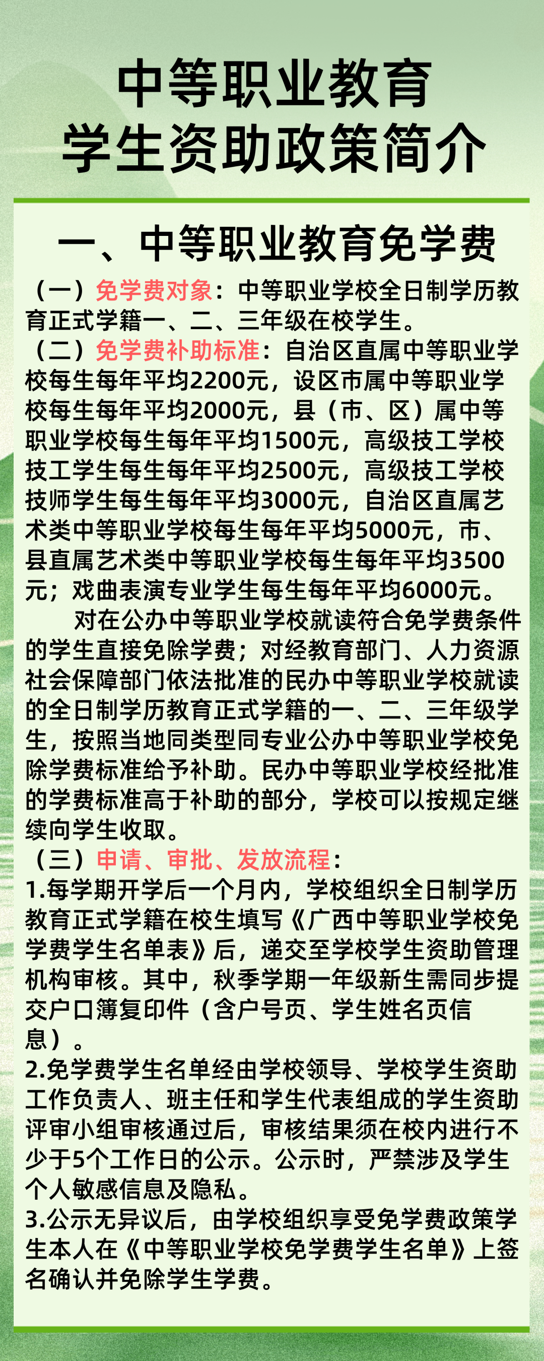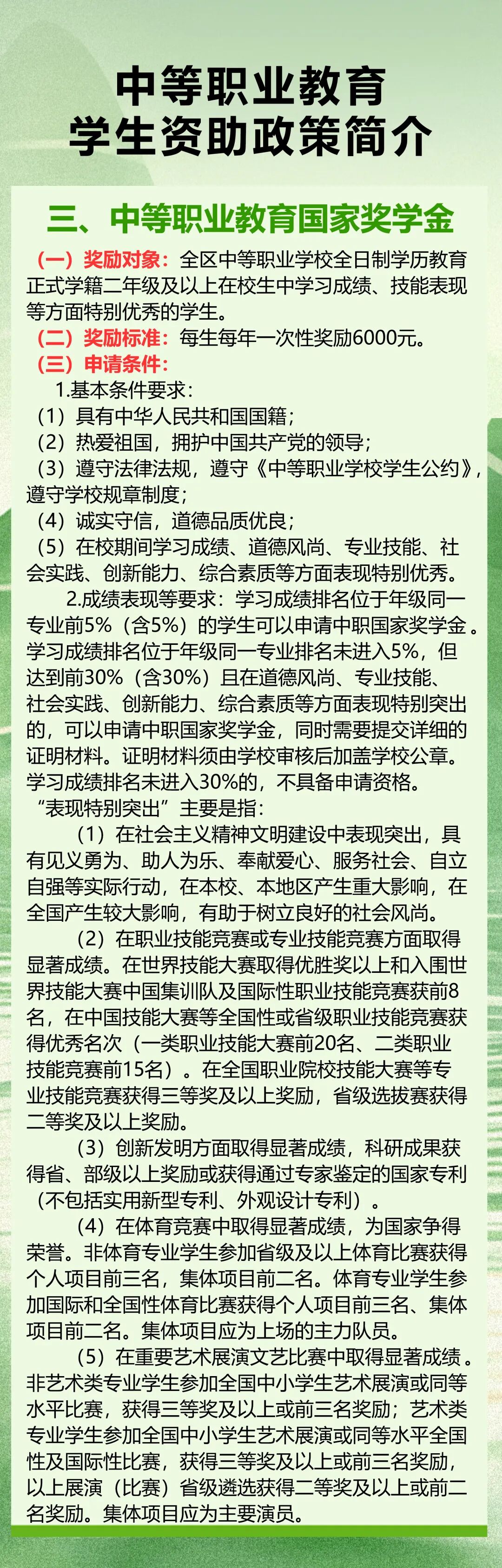 中等职业教育学生资助政策简介